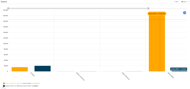• Gastos RRHH: Sumatorio de saldos de las cuentas del grupo 64.