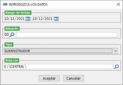 • En tipo deberemos poner el que queramos sacar, en el caso de trabajar con los dos sectores, es obligatorio sacar un archivo independiente de cada tipo.